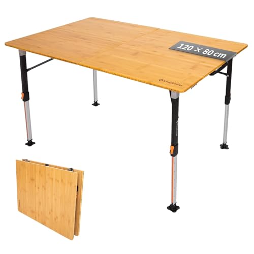 KingCamp テーブル折り畳み 42-70 cm 無段階高さ調節 バンブーテーブル 2折 4-6人用 耐荷重約80kg 長さ120 cm 幅 80 cm