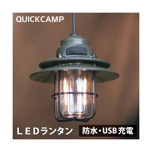 QUICKCAMP クイックキャンプ 防水ハンギングランタン USB充電LEDライト 2WAY 吊り下げ 卓上 カーキ QC-HL180 KH