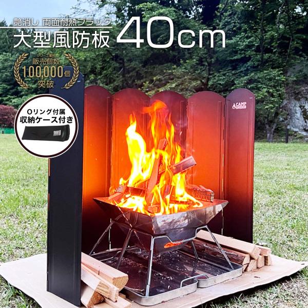 CAMP GREEB キャンプグリーブ ウインドスクリーン 40x120cm ブラック 大型風防板 大型反射板 リフレクター火力安定 燃料節約 暖房効果 防錆性 焚き火台薪ストーブ 風除け 風よけ 防風