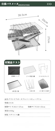 COVANK 焚火台 バーベキューコンロ 折りたたみ式 ステンレス製 芝生保護 船型デザイン 大型薪対応 フック付き2段調節