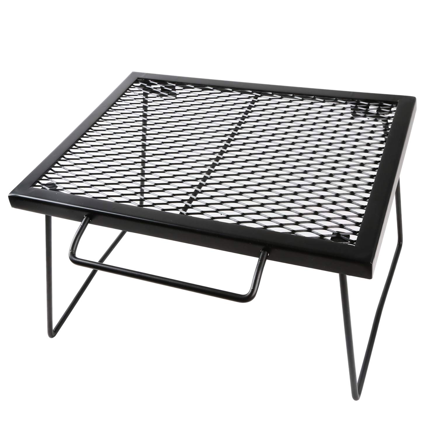 【1年間保証】アウトドア キャンプ テーブル 耐熱耐蝕 メッシュテーブル ロースタイル スチールテーブル 折りたたみテーブル メッシュ天板 持ち運び便利 コンパクト BBQ 庭 屋外メッシュテーブル 焚き火テーブル 折りたたみ 43×32×26cm サイド持ち手/収納袋付 アイアン製 マルチスタンド ローテーブル 頑丈 直火利用可能 コンロ置き ピクニック ソロ キャンプ アウトドア MT009【一台多役】実用的