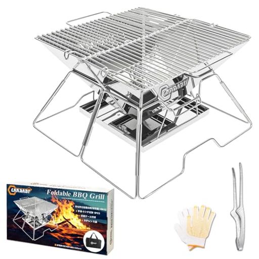 【送料無料】CARBABY バーベキューコンロ 焚き火台 アウトドアコンロ 折りたたみ BBQコンロ 1台2役 2-4人用 灰受けケース付き 収納袋付